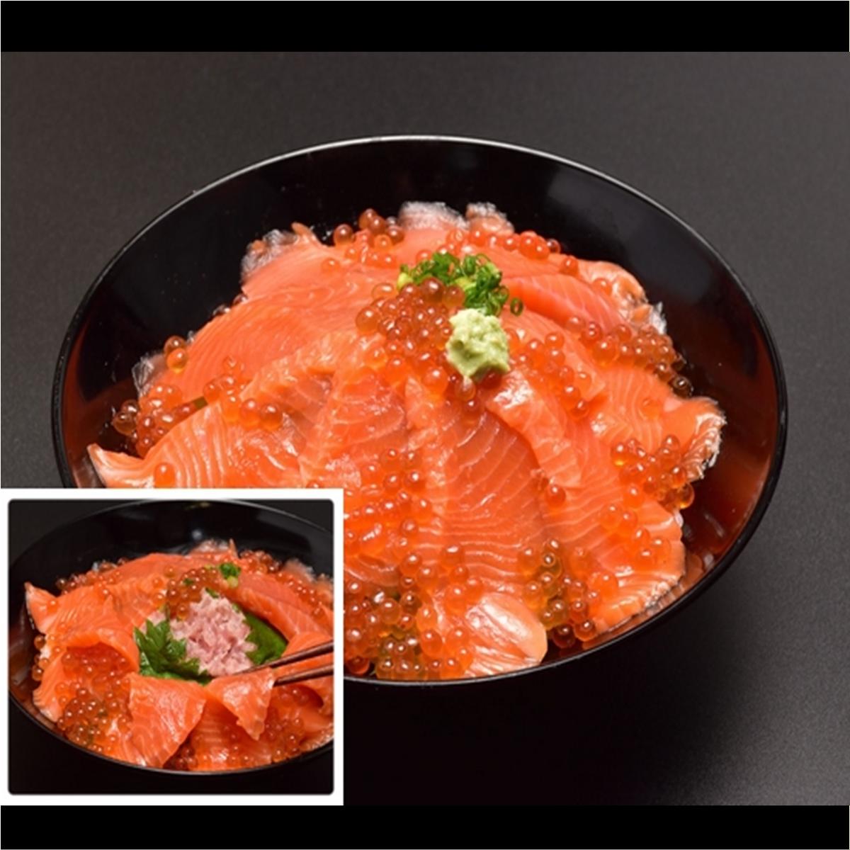 サーモンに隠れたねぎとろ「ドームサーモン丼」