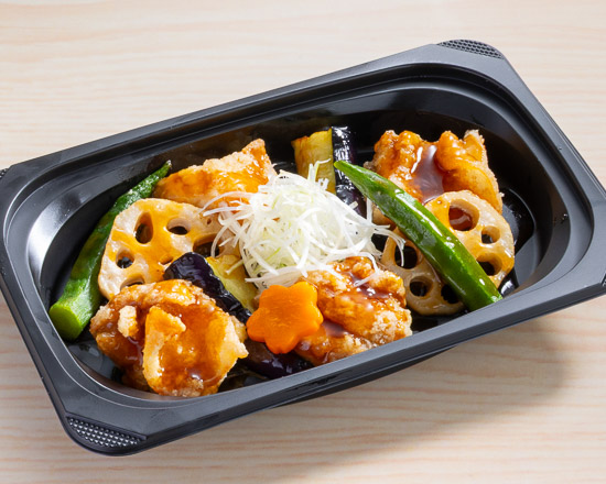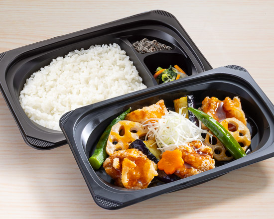 若鶏の竜田揚げと野菜の黒酢あんかけ弁当