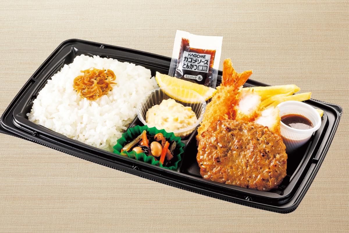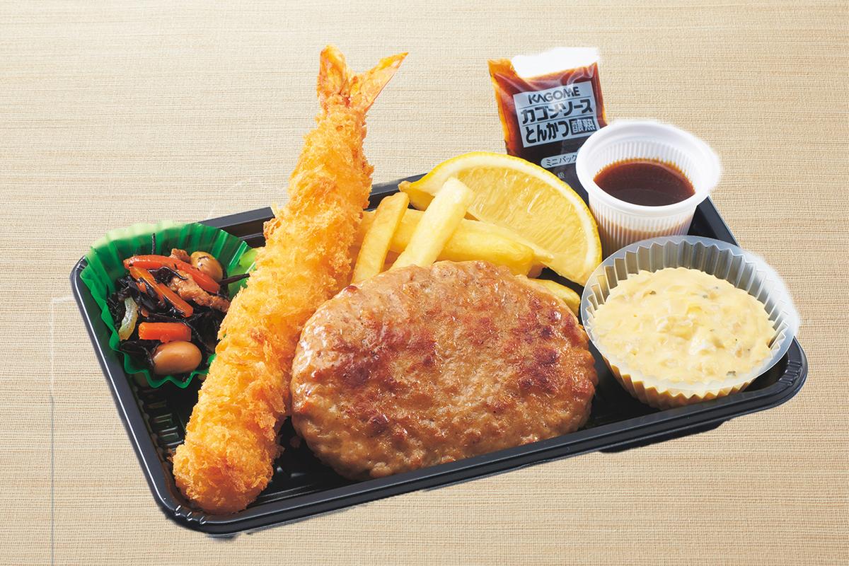 ハンバーグと大海老フライ弁当