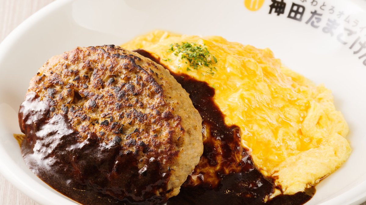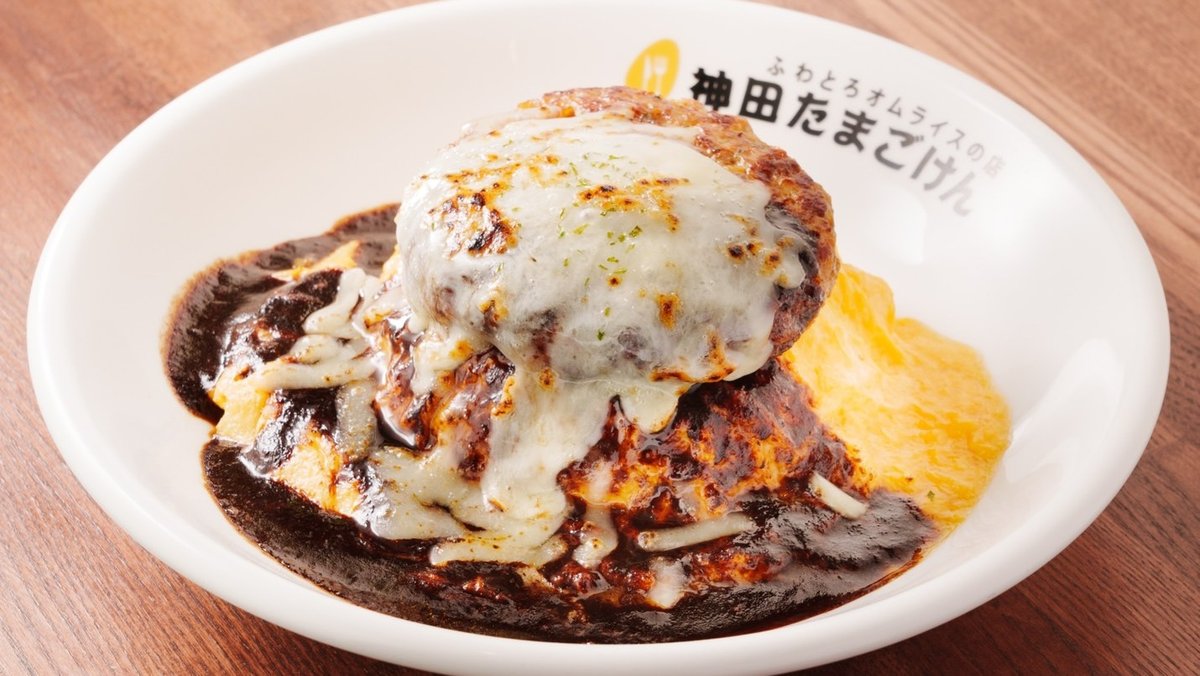 ハヤシ&炙りチーズハンバーグオム Hashed Beef Sauce & Grilled Cheese Hamburger Omelet Rice