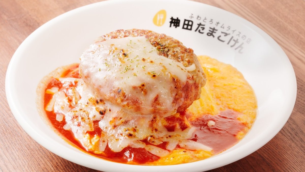 トマト&炙りチーズハンバーグオム Tomato Sauce & Grilled Cheese Hamburger Omelet Rice