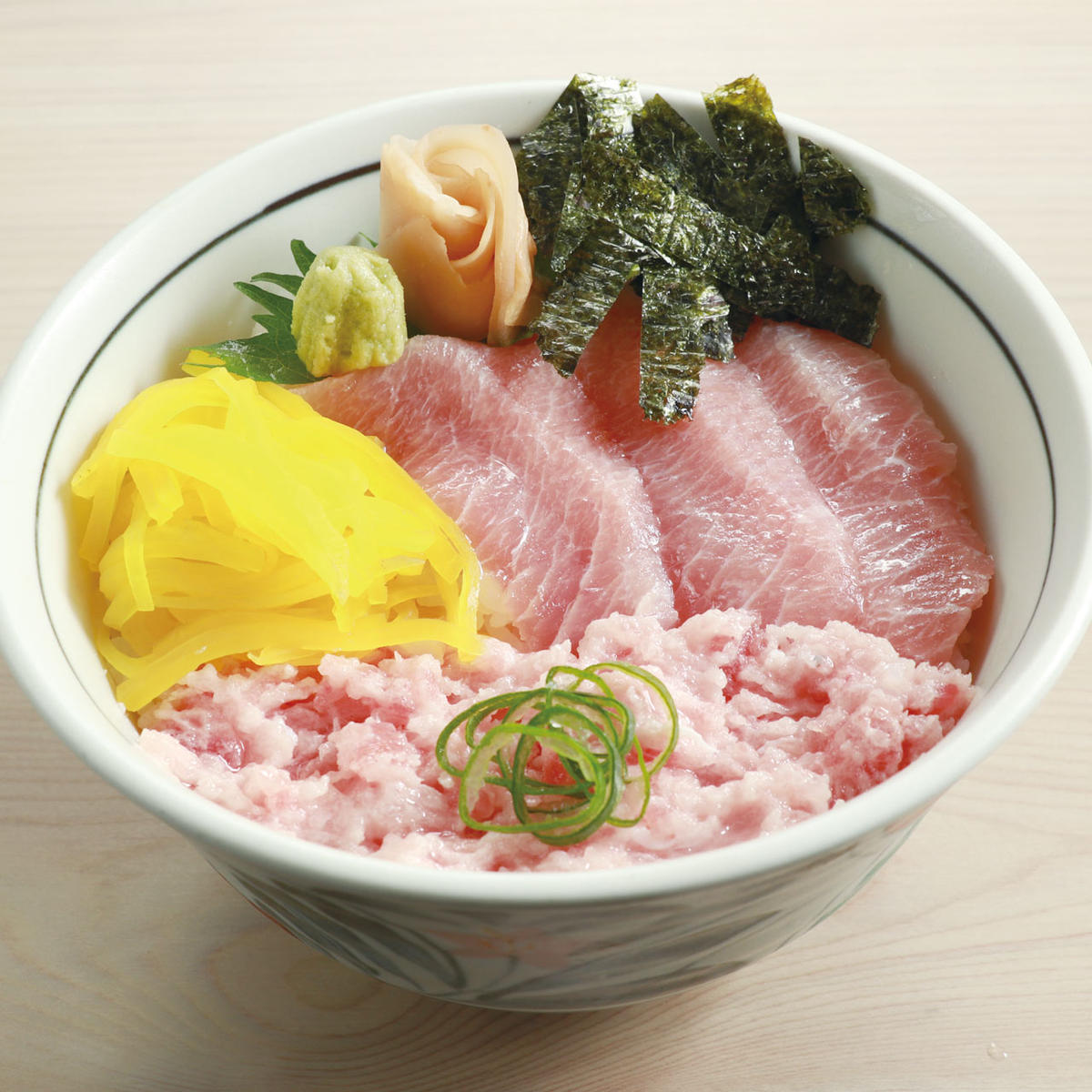 まぐろハラモとまぐろたたきたくあん丼 Tuna Belly&Minced Tuna Sushi Bowl with Pickled Radish