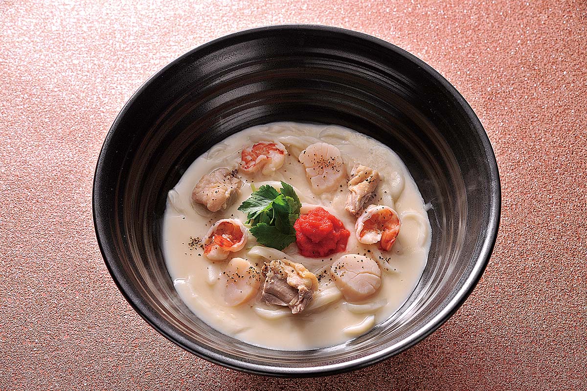 海老、鶏肉、明太子、貝柱 クリーム三昧のおうどん