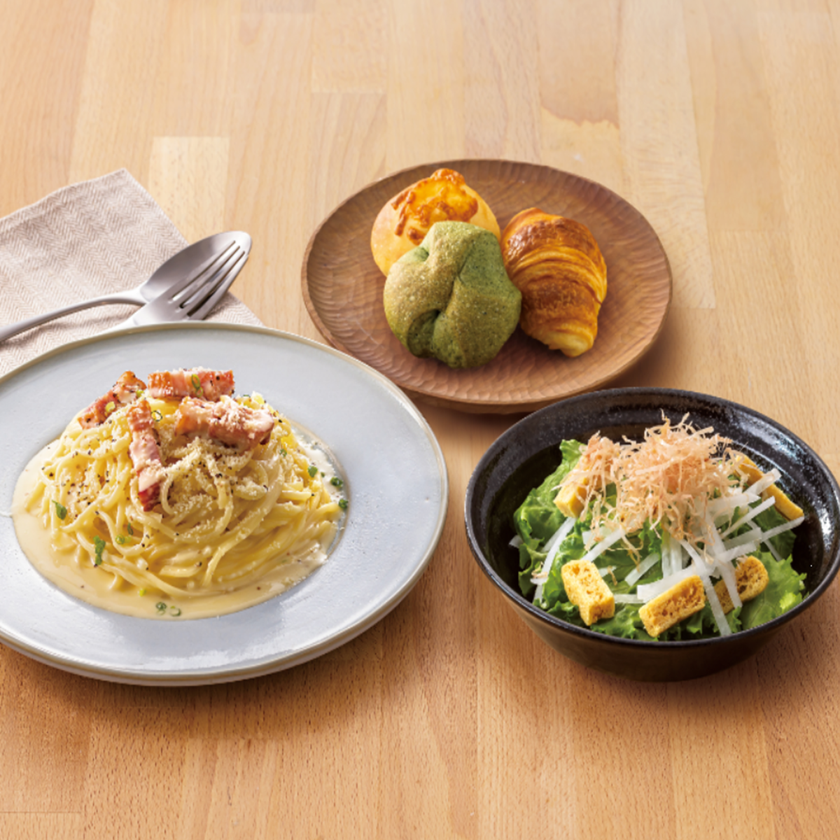 104.グリルベーコンとアスパラのクリームパスタ<パン3個付き>