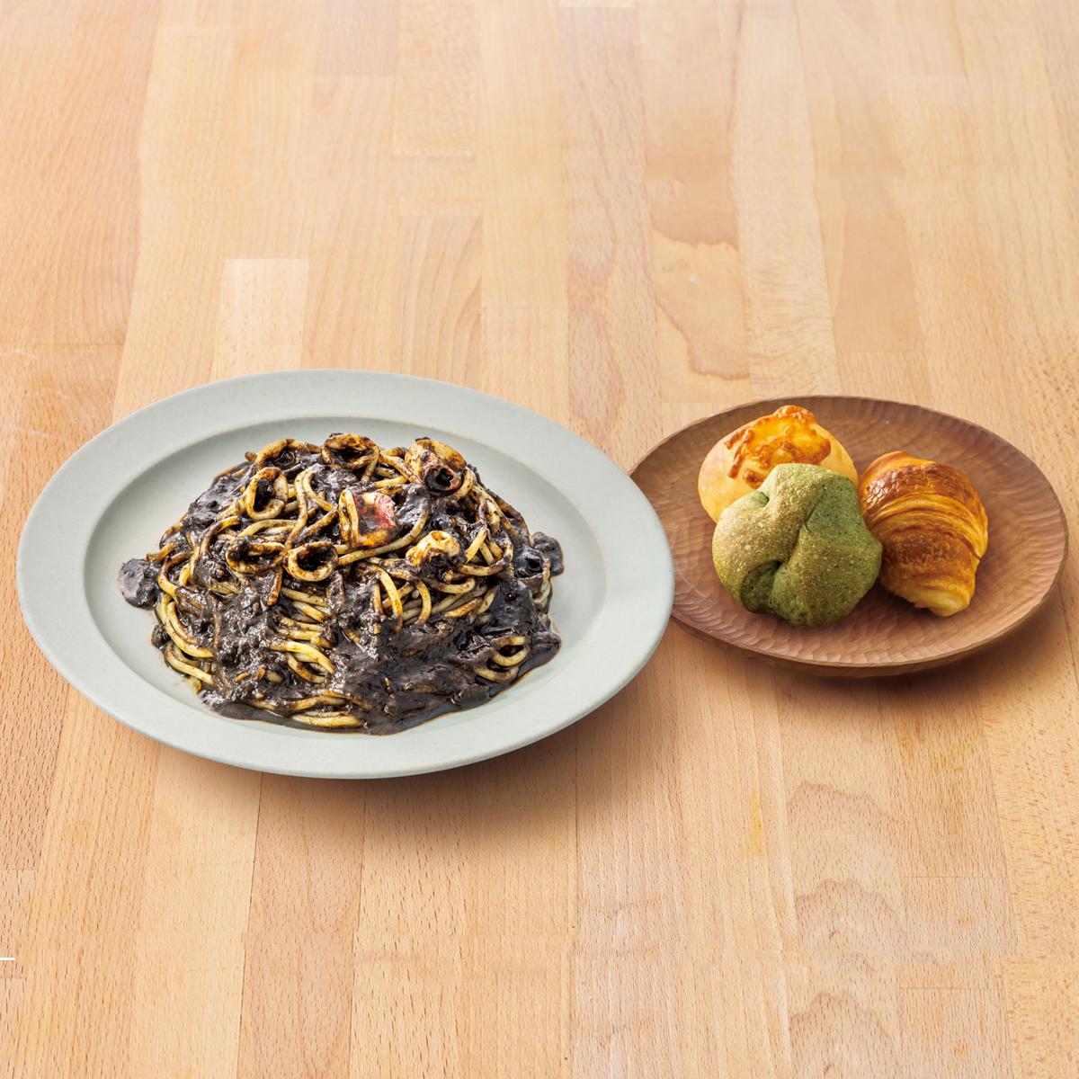 105.やりいかのいかすみトマトソース<パン3個付き>